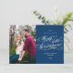 Um clássico cartão com fotos com a frase "Tenha um Natal feliz" em um roteiro com flocos de neve delicados cercou as palavras.