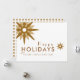 Placa de na moda com floco de neve e design de starburst em uma paleta dourada e branca. Feliz feriado apresentado em na moda. Personalize e personalize seu cartão com o nome da sua empresa e a mensagem personalizada usando os campos fornecidos. Um design de uma coleção coordenadora. Este não-cartão com fotos é ideal como um cartão corporativo para enviar Cartões de natal ou feriados felizes e deseja associar e clientes.