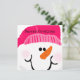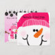 Cartões de cartões de natal Snowman com um bonito boneco de neve com um nariz de cenoura e boné rosa brilhante na frente, e dois bondeais vermelhos num fundo cor-de-rosa macio com flocos de neve brancos na parte de trás. É fácil personalizar esses cartões de cartões de natal com sua escolha de texto e seu(s) nome(s).