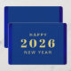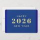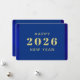 Cartão de feliz ano novo com cores azuis e texto dourado. Excelente para aqueles que procuram cartões de natal para celebrar o novo ano. Belo azul. Texto personalizado na frente e atrás do cartão. Adicione sua saudação pessoal ao fundo. Use o modelo para criar sua própria placa de cartões de natal de Feliz ano novo personalizada.