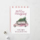 Cor de ameixa divertida e aquarela verde A Merry Christmas Card apresenta uma cena de Natal com uma árvore no topo de uma van, "With Love" em uma topografia de ornamento. Personalizar facilmente com name.pl