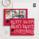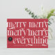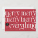 Este cartão de feriado profissional de na moda oferece uma combinação perfeita de alegria festiva e marca profissional. A frente da placa faz uma declaração em negrito com seu design e mensagem atraentes. Em um fundo vermelho vibrante, as palavras "feliz feliz feliz tudo" são exibidas em uma fonte serif grande e versátil em branco nítido. Esta repetição brincalhona de "feliz" cria um efeito visualmente marcante e memorável, enquanto o "tudo" abrangente adiciona um toque de calor e inclusão. A tipografia moderna dá ao cartão uma sensação contemporânea, garantindo que ele se destaca num mar de cartões de natal tradicionais. Destaque na frente é um espaço designado para o nome e o logotipo da empresa, permitindo que as empresas mantenham sua identidade de marca enquanto espalham torcida de férias. Este toque personalizado transforma a placa de uma saudação genérica em uma poderosa ferramenta de marketing. O verso da placa oferece outras opções de personalização. Inclui uma área para fotografia, dando a oportunidade de mostrar a equipe, destacar um projeto bem-sucedido ou compartilhar uma visão da cultura da empresa. Abaixo da foto está o espaço para uma mensagem curta e personalizada, permitindo que as empresas expressem gratidão a clientes, parceiros ou funcionários. A parte traseira do cartão também apresenta outro ponto para o logotipo da empresa, reforçando o reconhecimento de marcas. Este cartão de férias profissional estabelece um equilíbrio ideal entre o espírito festivo e a apresentação profissional, fazer excelente escolha para as empresas que procuram dar uma impressão duradoura durante o período de férias.