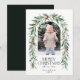 Cartão de Feriado Russo de Foto de Natal. Belo cartão de Natal com um arco com uma foto emparelhada com a real mão pintada de amora vermelha e coroa verde de inverno. Folhas e bagas padrão botânico de Natal no final do convite.