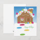 Casas de pão-de-gengibre que são doces e completamente decoradas com doces e gelo irão apelar visualmente num cartão.