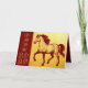 Desenho n°9 de um cavalo por IA transformado como imagem digital em fundo ouro. Design no cartão de saudação + personalizável 2026 + Desejos em chinês e inglês e "Ano do Cavalo" + textos para personalizar dentro no plano de fundo vermelho gradiante. Cartaz de feriado, adesivo (e mais em breve)... Perfeito para o Ano Novo Chinês do Cavalo 2026.