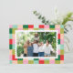 Compartilhe a alegria da estação com o cartão com fotos de feriado de Feliz e Bright Color Blocks. Apresentando uma vibrante borda de quadrados ousados vermelhos, verdes, cor-de-rosa e hortelã, este design coloca um giro moderno na xadrez clássica de feriado. Um quadro fotográfico escalado no centro destaca a sua imagem familiar favorita, criando uma marca festiva e memorável. Com muito espaço para personalização, esse cartão alegre se emparelha perfeitamente com o papel de embalagem, etiquetas e acessórios correspondentes da coleção para um conjunto de feriados colorido e coordenado. Projetado por Jen Pace Duran do Pace Creative Design Studio