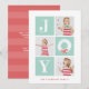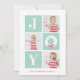 Quando você não pode escolher apenas um, este cartão de feriado multifoto é perfeito para mostrar instantâneos de toda a família! O formato de foto quadrada também acomoda fotos do instagram. Esta design moderna e divertida mostra uma simples mensagem de alegria com neve e branca sobre azulejos verdes da menta. O backer inclui um padrão e um espaço de distribuição amplos para adicionar uma mensagem pessoal ou fotos adicionais.