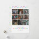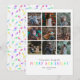 Compartilhe suas fotos favoritas do último ano com este cartão de feriado brilhante e moderno. Ele apresenta uma grade com espaços para nove fotos diferentes. A parte de trás do cartão tem um divertido padrão ilustrado das luzes de Natal.