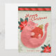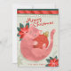 Cartão de Natal bonito, com retrorreflector, com ilustração de um gato rosa brincando com um bauble e um texto "Feliz Natal". Perfeito para amantes de gatos. Personalize este cartão com o seu nome. Arte original de Marketa Stengl.