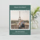 Enviar cartões de natal no estilo de vintagem nostálgica moderno. Uma borda de carimbo de correio enquadra sua foto quadrada de solteiro. Tipo retrorreflector minimalista e uma cobertura de cancelamento divertida com um círculo e linhas onduladas personalizadas com a data deste ano acrescentam ao encanto autêntico. Perfeito para fotos de viagem ou qualquer foto que você queira compartilhar com estilo exclusivo. Personalize a saudação, personalize com seu nome de família e nomes individuais. No verso: Uma borda de carimbo de correio em escala. Cor: Holly Green Todo o texto e todas as cores podem ser personalizados.