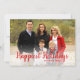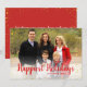 Cartão de Feriado da Família Clássica com foto do tamanho do cheio com sotaques dourados confetti e vermelho em negrito. Basta adicionar sua foto e seus nomes!