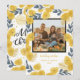 Feliz Natal! Envie desejos de férias para a família e amigos com este cartão de feriado alegre. Apresenta flores amarelas vibrantes com tipografia cursiva. Personalize apresentando sua foto favorita. O nome pode ser alterado e uma mensagem pessoal pode ser adicionada à parte traseira do cartão, se desejar.