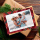 Uma xadrez de Natal colorida cria um fundo festivo para sua foto horizontal e mensagem personalizada do solteiro. Com suas pop de vermelho, verde, amarelo e azul, este cartão de feriado xadrez é perfeito para enviar alegria a amigos e familiares. A parte traseira é vermelha correspondente e inclui um espaço para outra foto e uma mensagem personalizada mais longa.