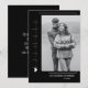 Um cartão de saudação simples com fotografia a na moda com tipografia clássica em branco sobre um fundo preto simples e limpo. Um design simples e contemporâneo para casais nessa temporada de festas! A imagem mostrada é apenas para fins de ilustração para ser substituída pela sua própria fotografia.