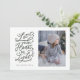 Um lindo cartão de férias com uma única foto na frente e uma saudação manuscrita com floreios e acentos de flocos de neve. Disponível em várias cores. Outros modelos disponíveis mediante solicitação.