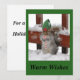 Este cartão de férias fofo tem uma imagem de um esquilo na neve que parece ter um chapéu de Natal. A frente diz "Desejos Quentes", e o verso tem o texto "Para uma Bela Temporada de Férias". Você pode personalizar o cartão ainda mais se quiser.
