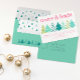 Celebre a temporada com nossa Feliz e nosso Cartão de Natal brilhante. Apresentando a mensagem festiva "feliz e brilhante" em cor-de-rosa vibrante, uma fila de árvores de Natal em vários tons de verde-azul, e um espaço para sua mensagem pessoal abaixo, este cartão é perfeito para espalhar alegria de férias. A parte de trás mostra o padrão de xadrez de coordenação do nosso conjunto de presentes, adicionando um toque de charme. Concluído com um envelope correspondente, esta placa torna os seus cartões de natal memoráveis e na moda.