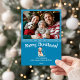 Celebre o feriado com este alegre cartão com fotos azul Feliz de Natal, com os rostos sorridentes da sua família e uma ilustração festiva do ouro num chapéu de Santa. As letras brancas e a borda da bolinhas tocantes adicionam um toque de espantalho, enquanto o layout moderno mantém sua mensagem especial na frente e no centro. Perfeito por compartilhar seu calor, alegria e espírito de feriado com amigos e entes queridos. Personalize com seu nome de família, membros e ano para uma manutenção que seja tão única quanto suas celebrações. Impresso em estoque de cartão de alta qualidade para uma impressão brilhante e duradoura.