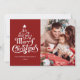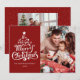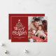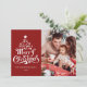 Feliz Natal foto da família Holiday Card Desejamos-lhe um Feliz Natal! Este cartão com fotos de feriado apresenta uma mensagem clássica em forma de árvore de Natal divertida em um fundo vermelho. Com uma foto na frente e outra atrás, é uma forma excelente de enviar alegria de Natal para amigos e familiares. O tratamento de tipo lúdico tem a forma de uma árvore de Natal.