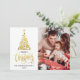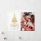 Feliz Natal foto da família Holiday Card Feliz Natal! Este cartão com fotos de Natal apresenta uma mensagem clássica com uma forma divertida de árvore de Natal. Com uma foto na frente e outra atrás, é uma forma excelente de enviar alegria de Natal para amigos e familiares.