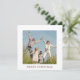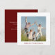 Cartão de Natal moderno, com um tema de fotografia da família e uma cor vermelha no verso. Com a personalizável tipografia vermelha e branca, você pode adicionar seu próprio texto. Você também muda a foto com a sua para torná-la única. Excelente de enviar desejos festivos de Natal ou feriados a amigos e entes queridos.