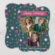 Envie desejos animados de feriado com este cartão festivo, com um rico fundo verde de tom joalheiro e bolinhas coloridas para um toque lúdico. O cartaz diz "Feriados Felizes", e você pode adicionar suas próprias fotos personalizadas junto com o nome de sua família na parte inferior. Perfeito por compartilhar alegria e calor no estilo desta temporada! Nota - As suas fotos podem ser ajustadas manualmente para ajustado perfeitamente o quadro, usando a opção "ferramenta design" em "personalizar".