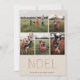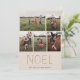 Ouro moderno e elegante "NOEL", cartão de colagem de fotos de Feriado. O cartão apresenta 5 fotos na frente com várias linhas para sua mensagem personalizada, nomes e ano atrás do cartão. As cores de fundo, mostradas na areia rosa, podem ser personalizadas.