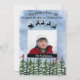 Belo cartão de inverno tem pinheiros pintados por aquarelas cobertos de neve no fundo com dois cardeais vermelhos nele estendidos. A tipografia diz: "Que nunca seja velho demais para revistar os céus na véspera de Natal". Uma silhueta preta de Papai noel e sua rena voa através do céu azul de aquarela. Personalize com sua foto favorita da família e seu nome para um cartão de Natal memorável para amigos e familiares. Projetado para você pela Digi-Zazzle It. Mais designs disponíveis no meu compro em www.zazzle.com/digiscrapthat.