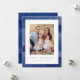 Cartão Hanukkah moderno com fundo aquarela pintado manualmente em tons de azul e típico mínimo. Uma foto na frente. Textura pintada atrás.