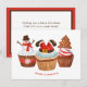 Este delicioso cartão de saudação de Natal apresenta cupcakes de Natal pintados com aquarela com glacé com Snowman clássico, Papais noeis e glacé de menta com biscoito de Árvore de Natal de chocolate! Personalize o texto com a sua própria mensagem para personalizar e enviar saudações de Feliz Natal com estas doces doces!
