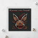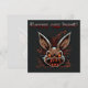 Esta Páscoa é preferencialmente esquisita e humorística, com um coelho zumbi que parece ter saído hetero de um filme de terror. Ele tem olhos amarelos e uma risada diabólica. O fundo da carta é uma cor escura, o que reforça a atmosfera assustadora da cena. Acima do coelho, a frase "Caçada Feliz de Ovo" é escrita em letras maiúsculas, com uma fonte divertida de preferencialmente. Apesar do lado ligeiramente mórbido do coelho, a mensagem ainda é divertida e lembra o espírito da tradicional caça aos ovos de Páscoa.