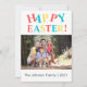 "Felz pascoa" colorido moderno em texto vermelho pastel divertido, azul e amarelo com sua foto, seu nome de família e o ano. No verso encontrará um fundo azul pastel com ovos de Páscoa. Altere o texto e a foto clicando em Personalizar acima. Se precisar de ajuda, por favor sinta-se à vontade para me contactar.