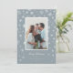 Um cartão de férias com uma única foto com um padrão de fundo feito de uma dispersão de flocos de neve e pontos desenhados à mão. Troque a foto e o texto pelos seus!