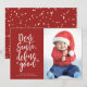 Este cartão de férias elegante apresenta a frase "Querido Papai Noel, defina bom" em um script branco moderno com sua mensagem personalizada abaixo. O verso é um padrão de flocos de neve brancos. A cor do fundo tanto na frente quanto no verso pode ser alterada.
