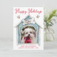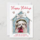 Deseje Feliz Férias aos seus amigos e familiares com este cartão de pet de férias divertido. Apresenta "Feliz Férias" em escrita, com marcas de patas e uma casinha de cachorro fofo enquadrando a foto do seu pet. Personalize com sua mensagem e nome abaixo. Este cartão de férias feliz e divertido será um dos favoritos entre todos os amantes de cães e animais de estimação. Celebre a temporada com este cartão de férias feliz da Cherry Lane Designs!