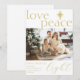 Cartão de Férias de Foto Plana Dourado e Branco. Envie saudações familiares com este cartão de Natal elegante com tema dourado e branco. Adicione facilmente a foto da sua família ou a foto do novo bebê para um toque pessoal.