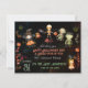 Este CARTÃO DE FÉRIAS DO MONSTRO DE HALLOWEEN adorável é perfeito para enviar seus votos de férias para seus parentes, amigos e entes queridos para celebrar a noite de Halloween. Este design apresenta pequenos monstros em fundo preto com folhas ornamentais e abóboras . Você pode personalizar facilmente todo o texto.
