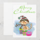 Feliz Cartão de Feriado de Ilustração de Gato de Natal. Gnomo bonitinho retro vestindo chapéu e cachecol sentados sobre presentes é uma ilustração criativa. Envie este belo cartão de saudação único nos feriados de Natal para a sua família e amigos