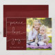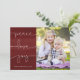 Que melhor maneira de desejar a vocês amigos e família uma feliz temporada de férias do que com este charmoso cartão com fotos pintado com as palavras "paz, amor, alegria" em um moderno roteiro escrito à mão branco? Personalizado com a sua foto favorita, este modelo de cartão de Natal 5x7 torna muito fácil criar, encomendar e enviar, deixando mais tempo para você passar com seus entes queridos! Também disponível em verde e azul!