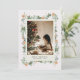 Floresta verde de Natal com laranjas aquáticas com uma foto personalizada no meio e um roteiro serif abaixo. Veja na nossa loja mais opções de cartões de feriado.