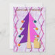 Minha obra de arte original é apresentada neste cartão de Natal cor-de-rosa e roxo, que consiste de um gato gráfico ilustrado sentado em frente a uma árvore de Natal retrô em um padrão de safra no fundo. As palavras "Cartões de natal!" estão na frente do cartão e a parte de trás do cartão diz "Que a magia do Natal encha sua casa com paz e alegria! Feliz Natal!" que pode ser personalizado como desejado. Esta carta bonito e alegre iluminaria a temporada de qualquer um, especialmente daqueles que gostam de designs de inverno.