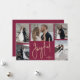 Os cartões de natal de Natal com fotos apresentam seus nomes e a palavra Joyful em letras de música em um fundo de amora. Basta carregar suas fotos favoritas e adicionar sua personalização no verso. Selecione Alta definição para melhor qualidade de foto. O Serviço de Design ao Vivo pode ajudá-lo com o layout design das suas fotos, se necessário.