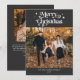 Cartão de férias retrô e minimalista para 2023 com fontes retrô com espirais que dizem "Feliz Natal" no topo com estrelas. Você pode adicionar 2 fotos a este cartão. O fundo é cinza de carvão.