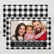 Este cartão de Natal de xadrez de búfalos preto faz o cartões de natal tradicional perfeito. A design apresenta um padrão clássico de xadrez de búfalo preto e branco. Adicione sua foto de Natal e personalize o cartão postal com seus nomes e o ano.