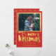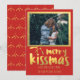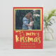 Vermelho festivo com detalhes coloridos de ouro, perfeito para o Natal. Adicione a sua foto de feriado ao falso quadro e ao seu nome recém-casado.