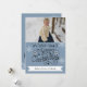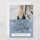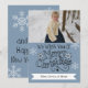 Texto preto que diz "Desejamos a Você um Feliz Natal" na frente e "e um Feliz ano novo!" no verso com um fundo azul náutico, flocos de neve brancos e cervejas de silhueta, e áreas onde você pode adicionar seu nome de família e foto em um cartão de cartões de natal de Natal que você certamente quer enviar para a família e amigos!