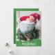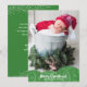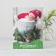 Um padrão de filigrana verde redimensionado em uma textura de linho destaca sua foto favorita nessas Cartões de foto de Natal de feriado. Sua mensagem pessoal e nomes no verso.
