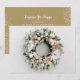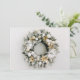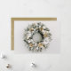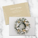 Cartões de cartões de natal de negócios planos apresentam uma bela coroa de pinheiros com neve, encravada com ornamentos de árvores de Natal brancas e douradas e flores na frente. Sua saudação personalizada e o nome da empresa são impressos em fundo dourado no verso. Certifique-se de verificar seu pedido duas vezes antes de adicioná-lo ao seu carrinho, pois o que você vê na tela é o que será impresso. O Serviço de Design ao Vivo pode ajudá-lo com seu layout de design, se necessário.