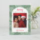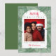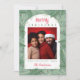 Um cartão de Natal "Feliz" para uma foto da família. Uma bela fronteira de pinheiros e galhos verdes em verdes e vermelhos borda sua foto e ano personalizados.