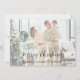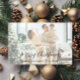 Envie desejos de feriado calorosos com esta foto moderna e desbotada Cartão de Natal Feliz. A design apresenta sua foto pessoal suavemente desbotada em um fundo festivo de ornamentos de ouro, pinecones e galhos cada vez verdes, criando um olhar confortável e elegante. "Feliz Natal" é escrito em na moda preto na parte inferior com espaço abaixo para o nome da sua família. Uma bela escolha para compartilhar seu momento familiar favorito enquanto envia saudações de época a amigos e entes queridos.